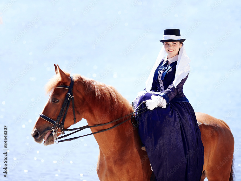Portrait of the lady on a red horse.