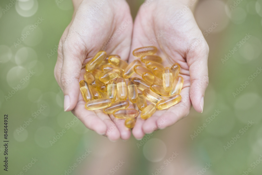 handful of Omega-3 capsules