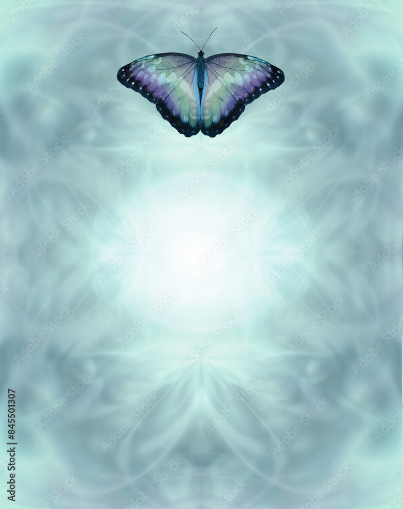 Spiritual Blue Butterfly Message Template Background - ideal for an Order of Service funeral wake, spiritual healing advertisement, invitation, diploma, award, accreditation with copy space for text