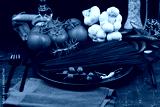 Raw black homemade spaghetti bunch isolated. Dry black noodles macaroni bundle. Close-up