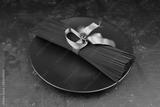 Raw black homemade spaghetti bunch isolated. Dry black noodles macaroni bundle. Close-up