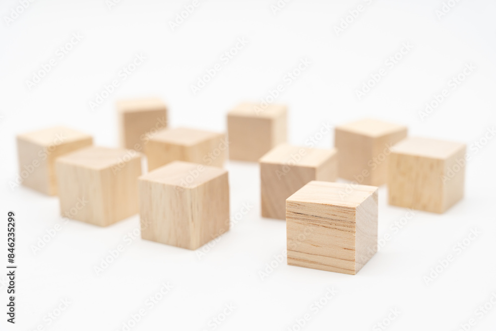 Wooden cube or wooden blocks isolated on a white background. Pile of wood block. Copy, empty space for text.
