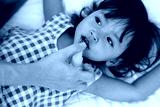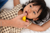 mother or doctor spraying medicine in mouth of toddler. baby sore throat treatment concept