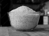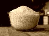 Rice cereal on a table in a glass plate, a wooden