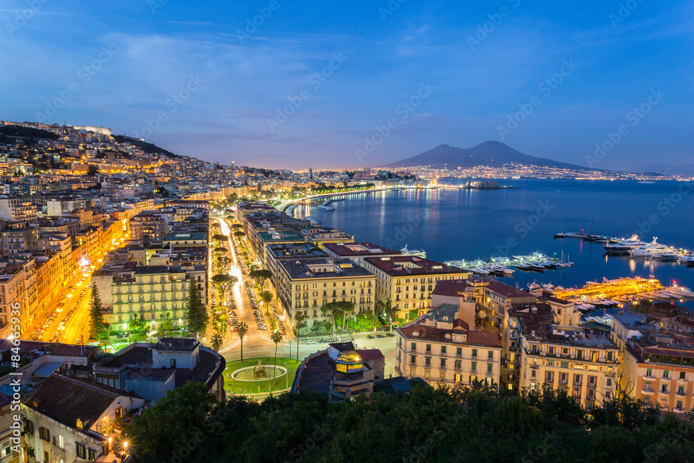 Naples, Italy, view of the bay and Vesuvius Volcano by night, from Posillipo