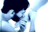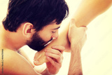 Handsome man kissing woman's feet.