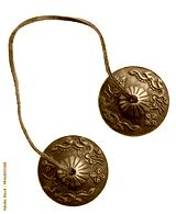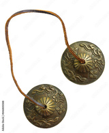Nepalese cymbal bells, tingshas, Tibetan. Musical instrument used in meditation. Isolated on transparent background.