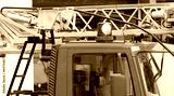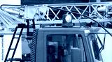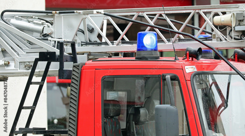 Flashing blue lights of the fire truck during emergency rescue