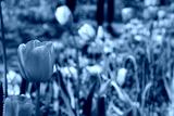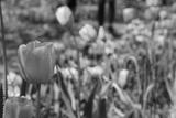 orange tulip in full bloom amidst a vibrant flowerbed against a quintessential Dutch backdrop