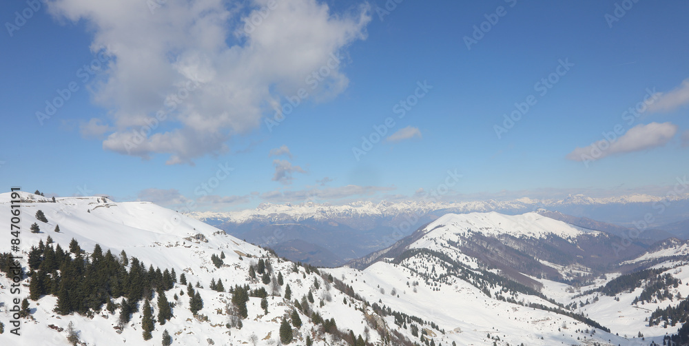 Snowy mountain panorama with fresh snow in winter