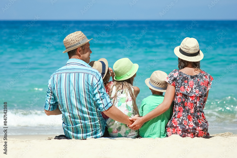 A Happy family with children on the coast of the sea travel