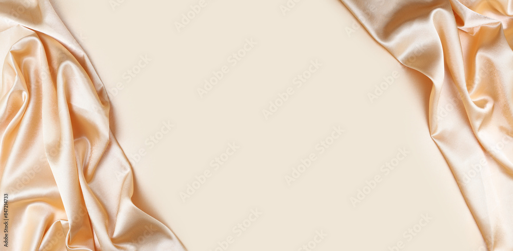 Beige pearl wave fabric silk. Abstract texture horizontal copy space background.