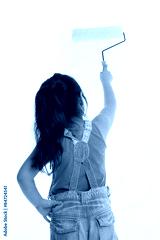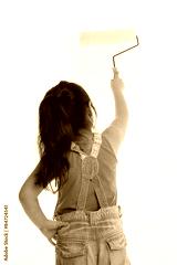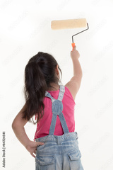 Little Asian child painting the wall on isolated back ground