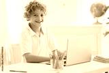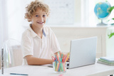 Child in school. Student in class. Boy at homework
