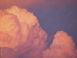 CLOSE UP: Fluffy cumulonimbus cloud glowing in pink colors after summer sunset