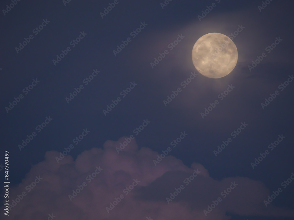 Blue tones in the night sky with a glowing full moon and illuminated cloud