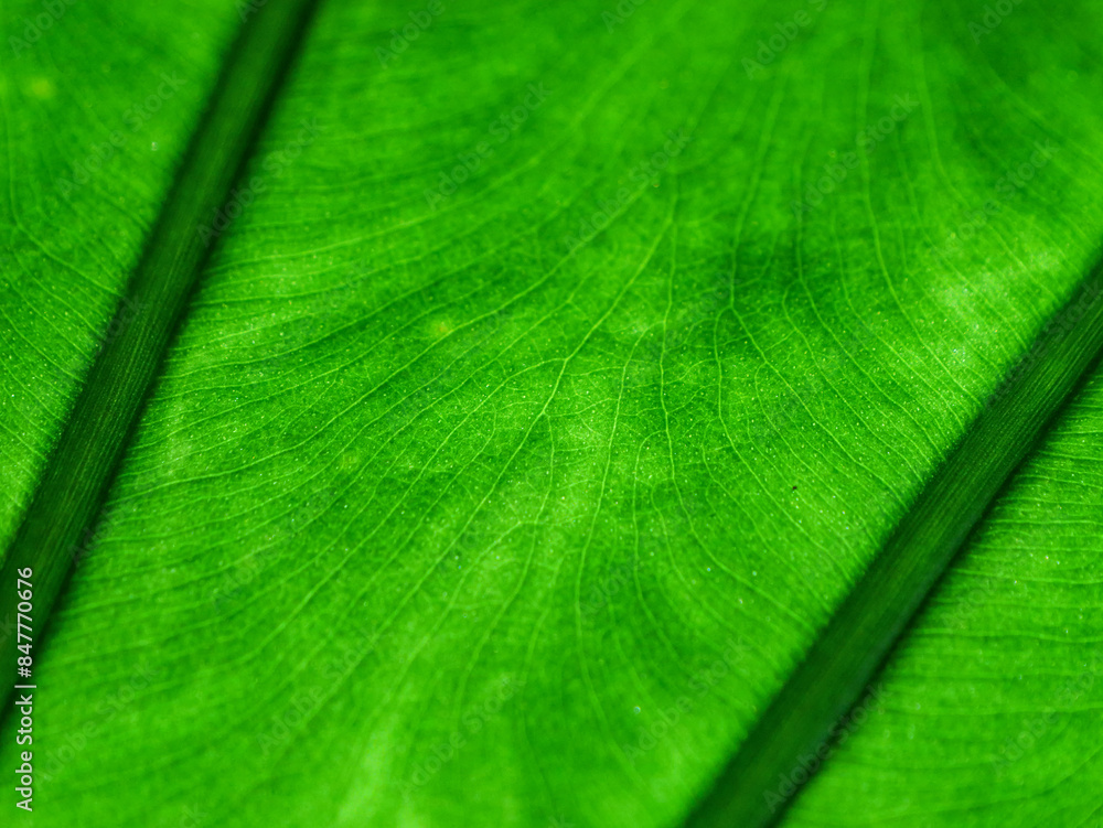 CLOSE UP, MACRO: Beautiful texture and vein pattern of a vibrant green leaf