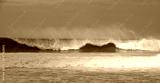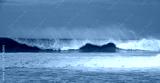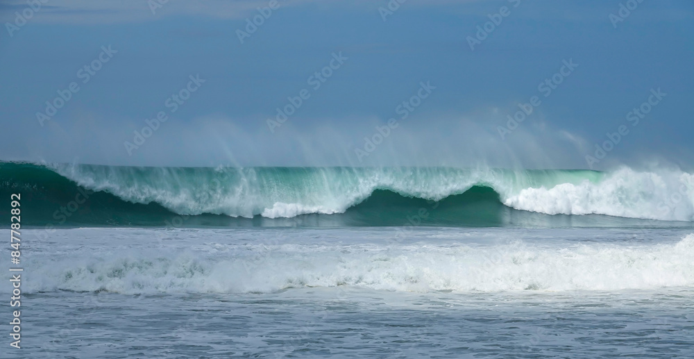 Cleanup set with an amazing blue closeout wave breaking along Pacific coastline
