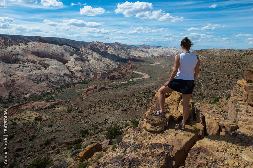 Woman looking down the Halls Creek Overlook Capital Reef Nationa