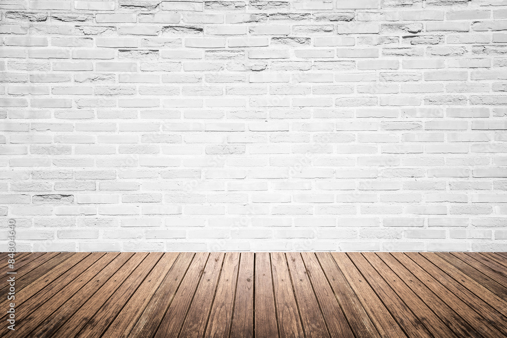 Old interior room with brick wall and wood floor