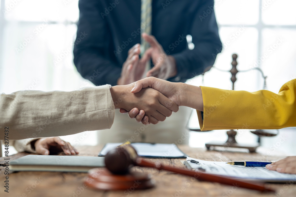 A man shakes hands with another man in a yellow shirt