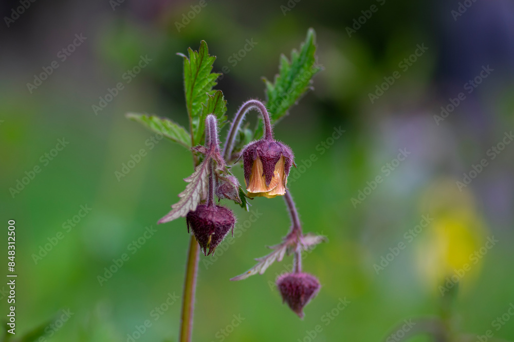 Geum rivale water avens wild flowering plant, purple red and yellow flowers in bloom