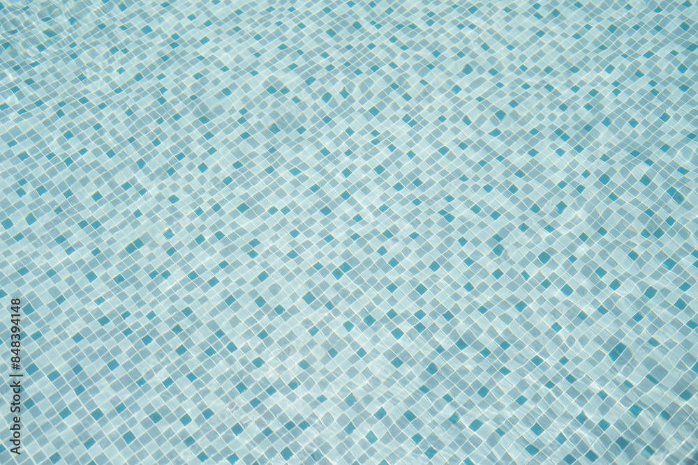 Surface of blue or turquoise swimming pool with clear water ripple waves for wallpaper in summer season. Pattern material texture. Nature background,