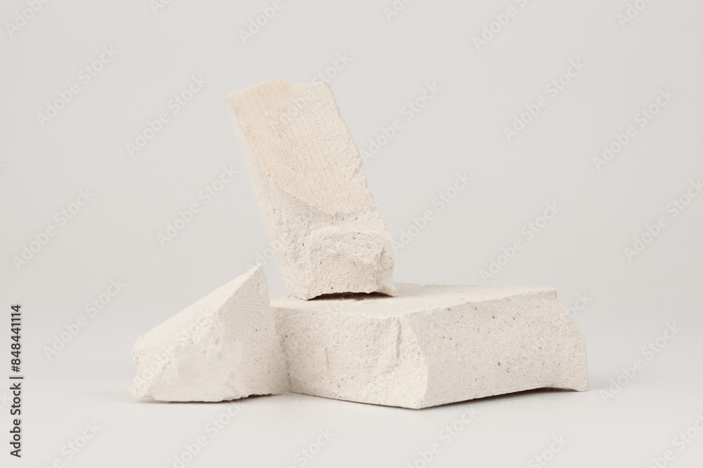 White stones platform podium on beige light copy spase background. Minimal empty display product presentation scene.
