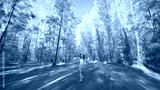 A portrait of Asian woman traveling at Lush green pine trees in tropical forest in national park in summer season. Natural landscape. Pattern texture background. People lifestyle.