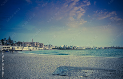 Landscape in Tunisia:sea and the castle Ribat in the distance.