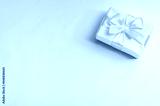 Invitation or greeting card mockup with yellow gift box on pink background. Copy space.