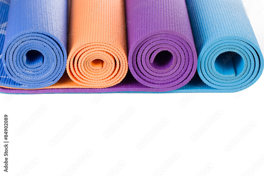 Colorful yoga mat and on white background