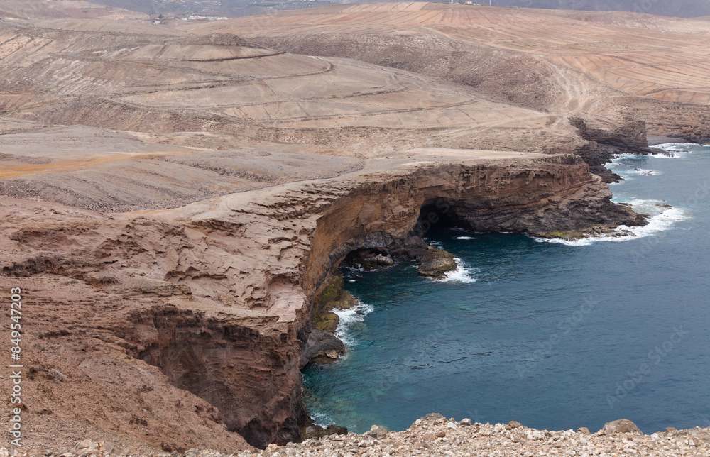 Gran Canaria, landscape of steep eroded north west coast between Galdar and Agaete municipalities, hike between