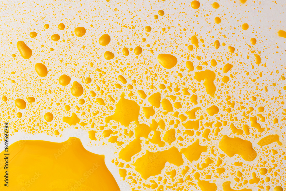 Ink Watercolor flow blot drops splash. Abstract texture Yellow orange color stain background.
