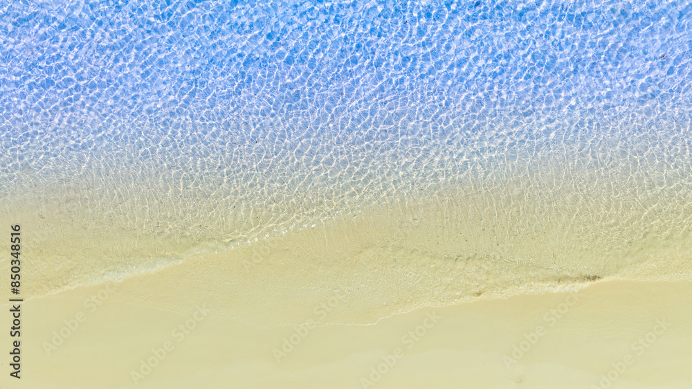 Top view beach sand background for summer vacation concept. Beach nature and summer seawater with sunlight light sandy beach Sparkling sea water