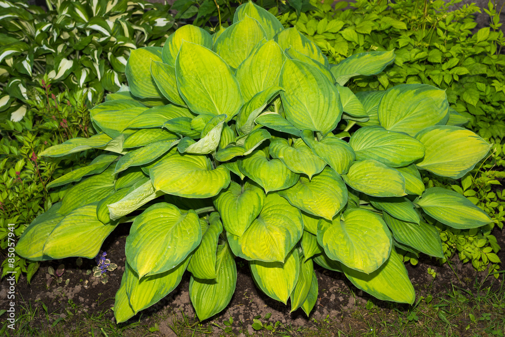 Big plant Khosta or hosta, with rare yellow and green leaves