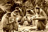 Group of Proboscis Monkeys in Borneo rainforest Sandakan Malaysia