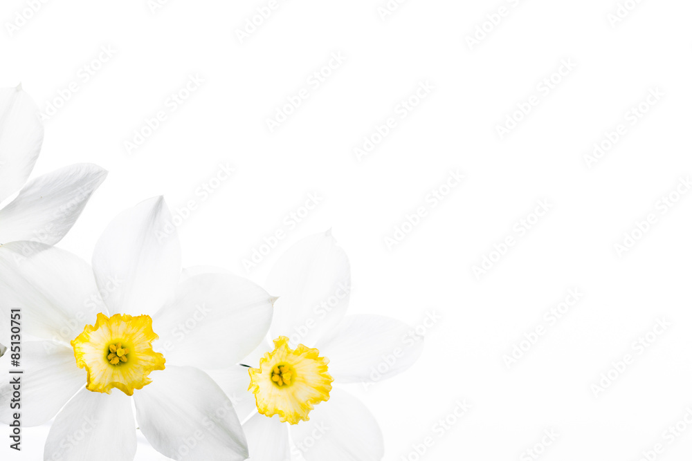 Spring floral border, beautiful fresh narcissus flowers