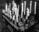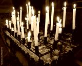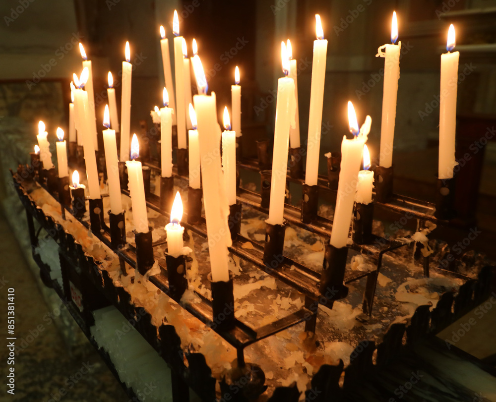 flames of votive candles in the house of worship lit by devotees during spiritual prayer