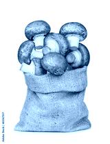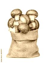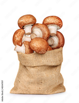 fresh mushrooms mushrooms in a bag of sackcloth isolated on a wh