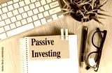 PASSIVE INVESTING text pink sticky on notebook with keyboard, pen and glasses