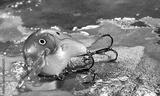 Shiny fishing lure with treble hooks