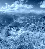 Mountain valley with tracks near Jenner mount in Berchtesgaden National Park