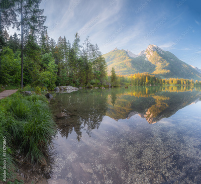 View of Hintersee lake in Berchtesgaden National Park Bavarian Alps, Germany