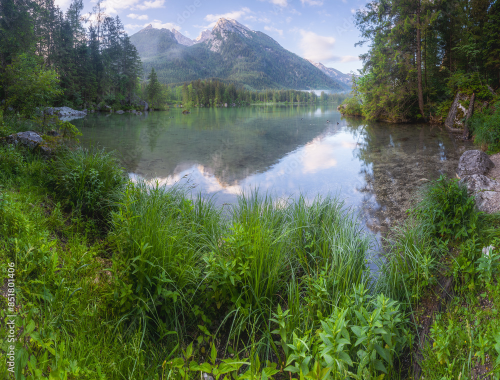View of Hintersee lake in Berchtesgaden National Park Bavarian Alps, Germany
