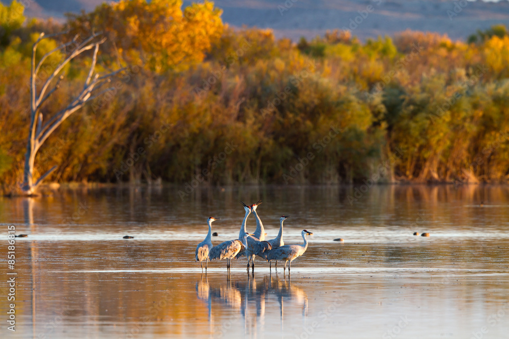 Sandhill Cranes in autumn, Bosque del Apache National Wildlife Refuge in New Mexico