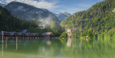 Passenger boat station, pier or dock on Konigsee lake in Berchtesgaden, Germany