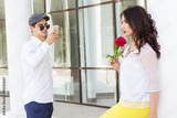 Boy taking photo of his beautiful girlfriend on phone camera