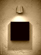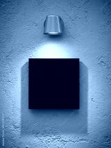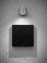 Black square logo sign template Signage on wall with spotlight Mock up