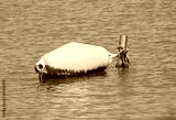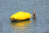yellow buoy floating to warn ships of underwater rocks and reefs
